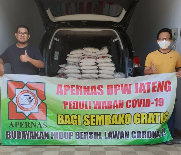 Semarang Jateng – APERNAS kembali mengadakan kegiatan bagi sembako kepada masyarakak kurang mampu, kegiatan ini di lakukan oleh DPW APERNAS Provinsi Jawa Tengah dalam rangka melawan penyebaran Covid-19.